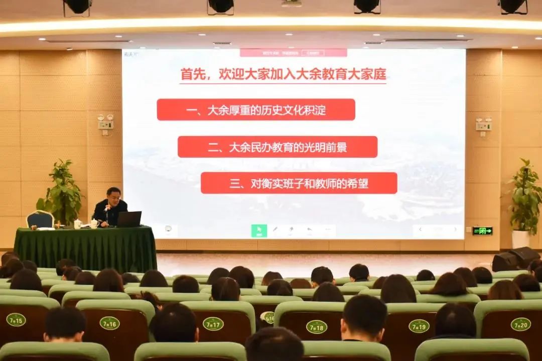 12月28日,高新·大余衡水實(shí)驗(yàn)學(xué)校特邀大余縣教科體局黨委書記、局長曾凡偉到校,為全體教師生開展題為《立足教育熱土,厚植家國情懷》的專題講座。會議上,曾局長從大余的歷史文化積淀、民辦教育前景兩方面簡析,并對大余衡實(shí)的教師們寄予厚望。