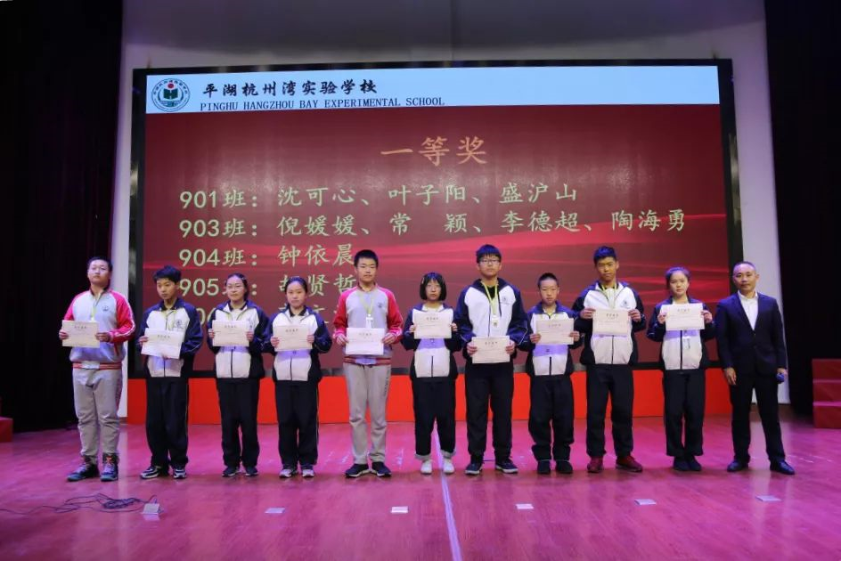 除了九年級的科學競賽外,本周還在初中部進行了《我與平湖杭州灣實驗學校的故事》作文競賽,會上吳正龍主任宣讀了初中部三個年級或一、二、三等獎的學生名單并對獲獎學生進行頒獎。
