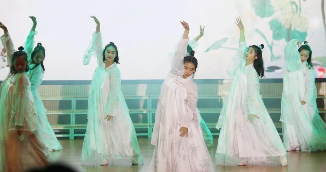 “飄然轉旋回雪輕,嫣然縱送游龍驚。”中國舞班的孩子舞姿輕盈,廣袖輕曳,時而飄飄若流風雪回,時而疾速如游龍受驚。