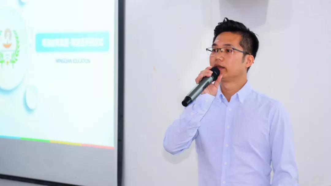 廣州明謙教育集團龍煥輝總經理上臺致辭,龍經理對“明謙班”做了詳細的介紹,并能借助明謙教育集團旗下的幼兒園宣傳片,從行政、教學、工作環境等方面都做了詳細的介紹。