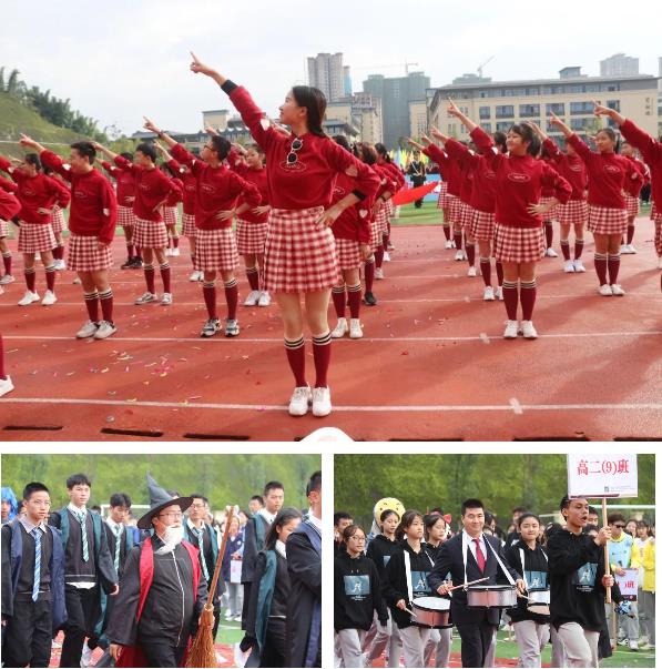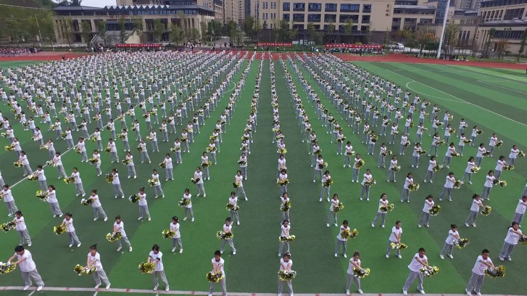 潔白的和平鴿應聲而起飛向藍天,鼓樂隊奏響激昂的運動員進行曲,班旗方陣與彩旗方陣的百余名同學擎著代表班級榮譽的旗幟,帶起陣陣破風之聲,這聲音不僅預示著運動會的勝利開幕,更彰示著自貢衡川定將勢如破竹,走向更高的天空。