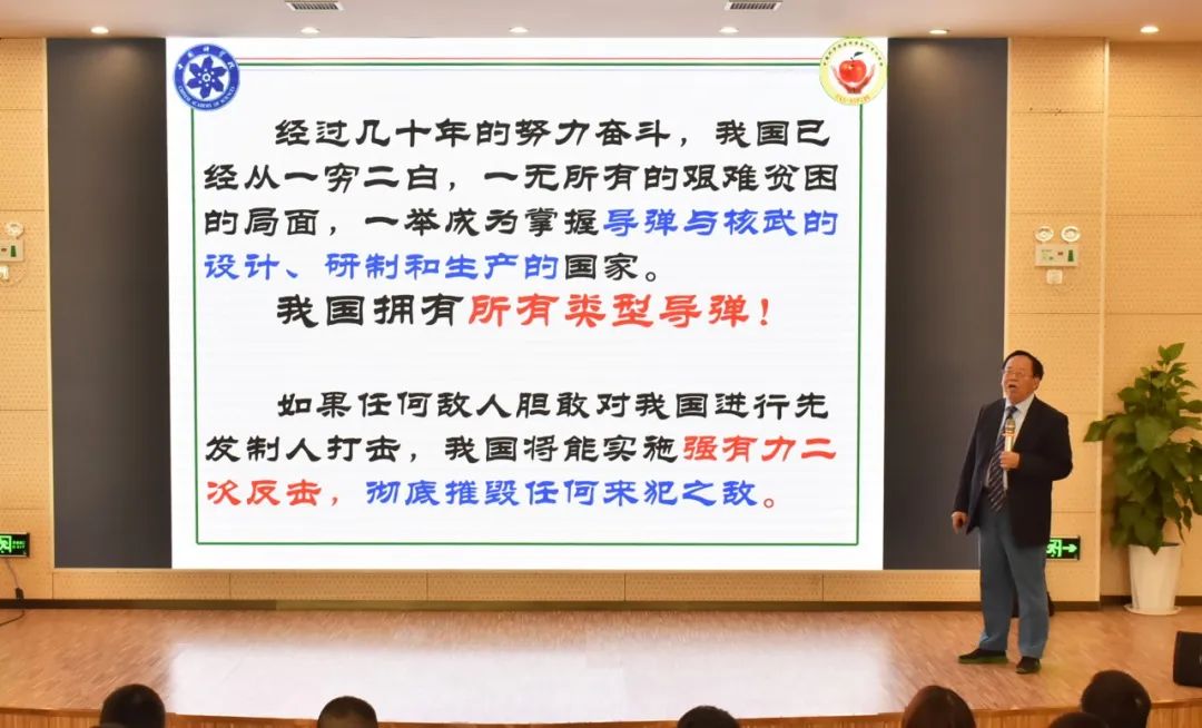 張德良教授通過大量視頻和圖片資料,介紹了我國的國防建設和武器裝備,展示了我國當前的主要戰略導彈核武實力與成果;介紹了我國從新中國建立之初艱難貧困局面到逐漸成為掌握導彈與核武的設計、研制和生產國家的發展歷程以及“中國導彈之父”錢學森為中國航天航空事業所做出的巨大貢獻。