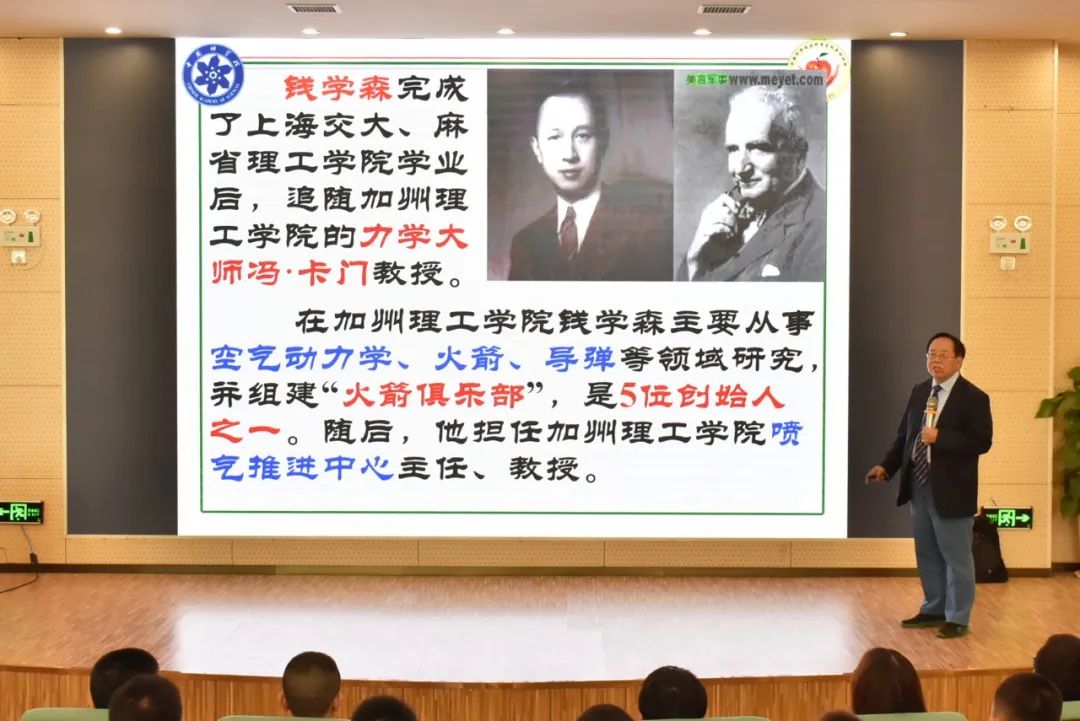11月5日晚上,張德良教授又以一個特殊的身份站在這里——作為我國兩彈元勛錢學森先生的學生,以一顆赤子之心為我們講述錢學森老先生偉大而富有傳奇色彩的一生。