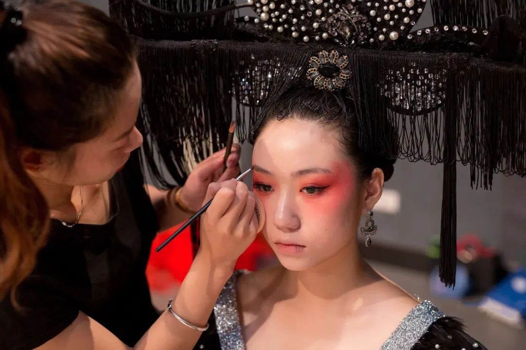 “本屆的形象設計作品都是同學們的原創(chuàng)。我們所說的形象設計主要是指人物形象設計,它涵蓋了多方面比如妝面、發(fā)型、服飾、美甲甚至一些彩繪,是對人物整體形象的設計,突出人物的精神面貌和氣質。”