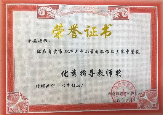 學(xué)生獲2019年四川省中小學(xué)電腦制作活動機器人競賽省二等獎1項、三等獎2項。
