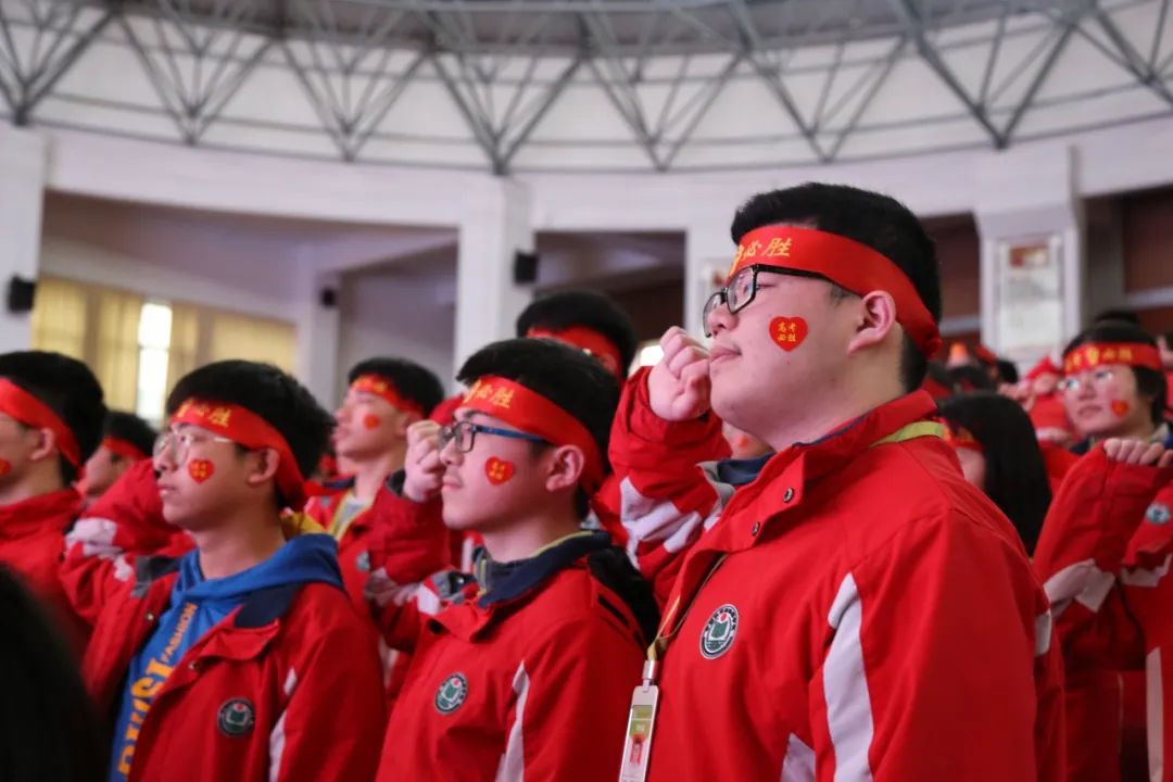 大會的最后,在領(lǐng)誓人高三2班王嘉陽同學的帶領(lǐng)下,全體高三學子用洪亮的聲音喊出對未來的雄心壯志和錚錚誓言。十載寒窗,百天苦練,何人健步登金榜?一腔熱血,萬丈豪情,我輩英才奪桂冠!