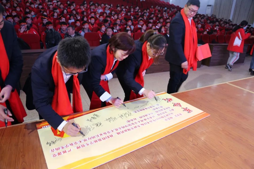 隨后,全體高三教師在張朝老師的帶領(lǐng)下簽軍令狀并宣誓。不負使命,認真工作,甘為人梯,培育棟梁,關(guān)愛學生,創(chuàng)造輝煌,千淘萬漉雖辛苦,吹盡狂沙始到金,這就是高三教師的不變承諾!